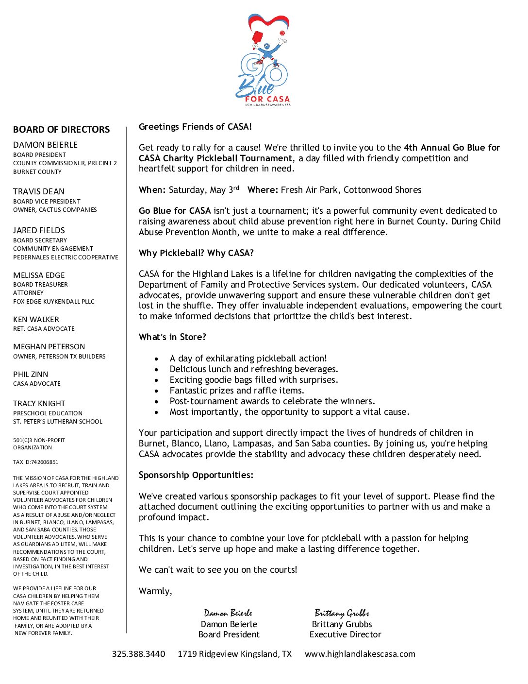 Go Blue for CASA Sponsor Packet