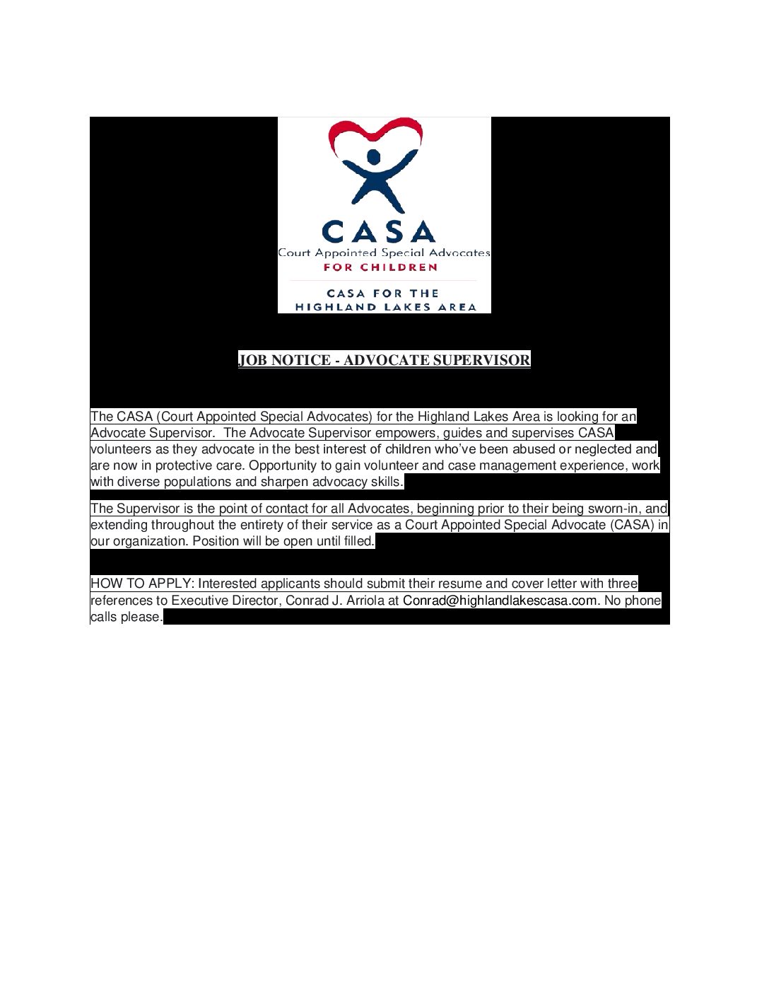 CASA for the Highland Lakes Area